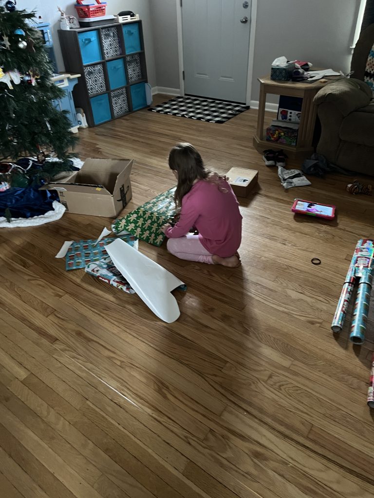 So while shes wrapping I’m trying to get dishes done and put away the clean dishes from the dishwasher then time runs out I’m just starting to clock into work in the basement she comes downstairs with a grin on her face says ” Chrisy we need more tape” I started laughing said “I’m sorry hun but I’m working but I’ll be happy to get you some tomorrow” she smiled just went back upstairs. but what really made me happy was that she feels better.