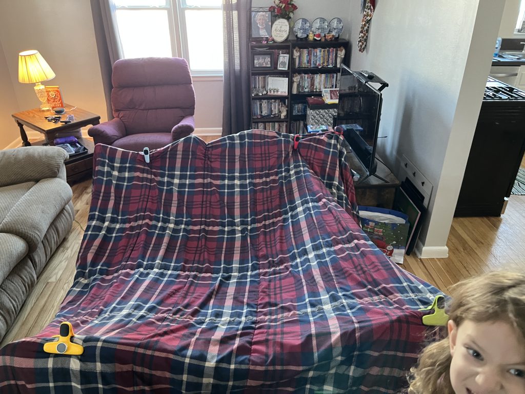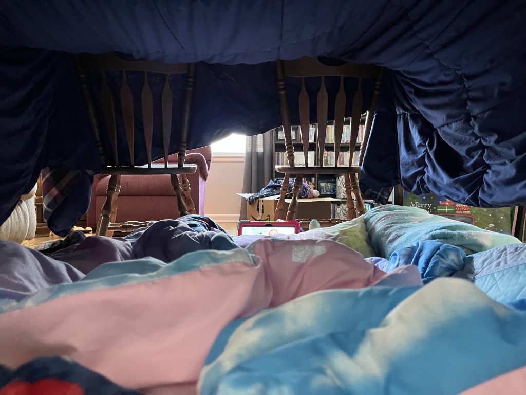 This was all divas creation here all 400 blankets, I may have exaggerated little bit. She manage to use up our chairs so we were eating standing up for few weeks it was fun challenge because taking the chairs from the fort to eat was fun but not fun enough we kept having to reset up the fort (whoops she saw this she’d be saying house)