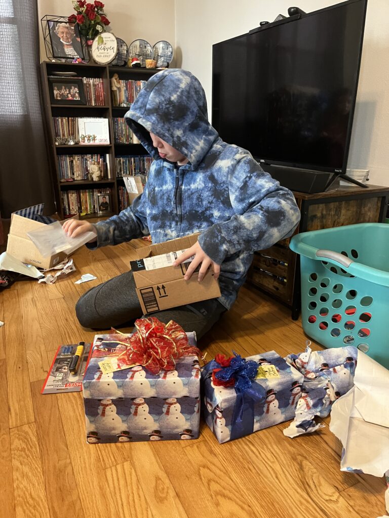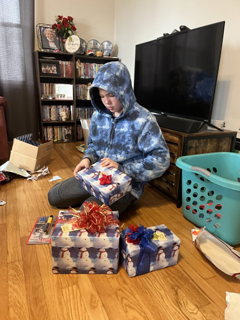 Jeremiah made a list on amazon that we could pick his birthday gifts from that list for him which he had a good idea as to what we got so we threw in a curve ball and got him a scooter as well. Jeremiah was so excited to open up his gifts. then to make things more fun my parents brought some Christmas gifts up since they were not able to make up for xmas So we had late Christmas and celebrated Jeremiahs early 12th Birthday.
